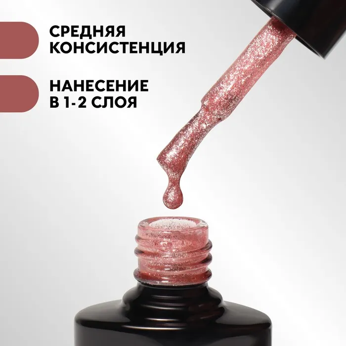 Гель лак для ногтей, с блёстками, трехфазный, 8 мл, LED/UV, розовый (015) — Характеристики