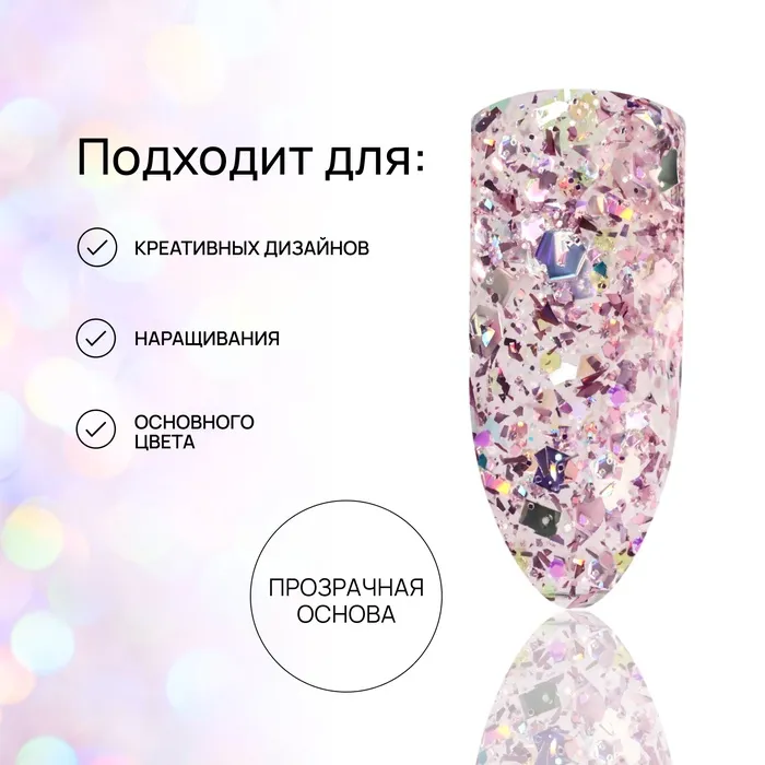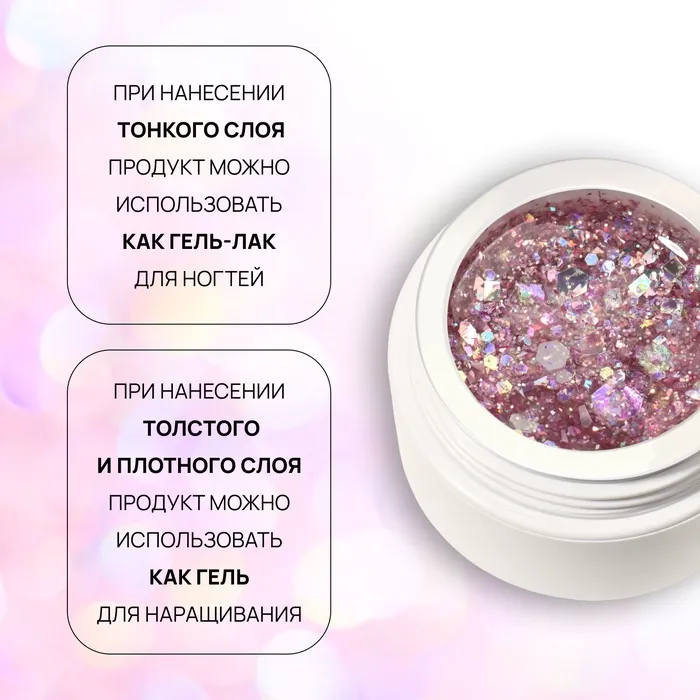 Гель лак для ногтей, с блёстками, трехфазный, 8 мл, LED/UV, розовый — Характеристики