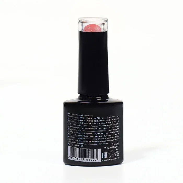 Гель лак для ногтей, с вкраплениями, трехфазный, 8 мл, LED/UV, розовый (02) — Характеристики