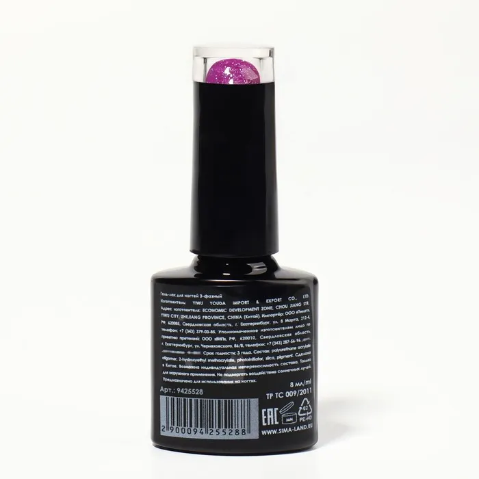Гель лак для ногтей, светоотражающий, трехфазный, 8 мл, LED/UV, фиолетовый (013) — Характеристики