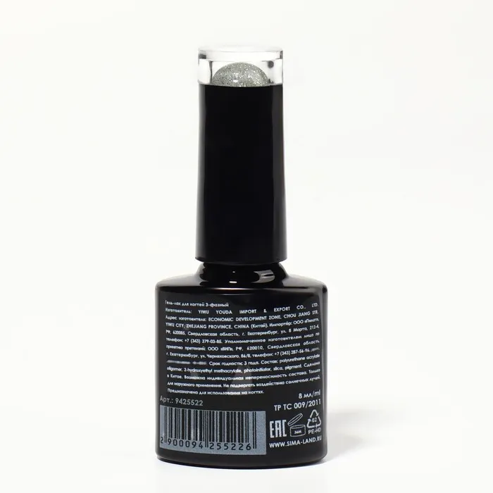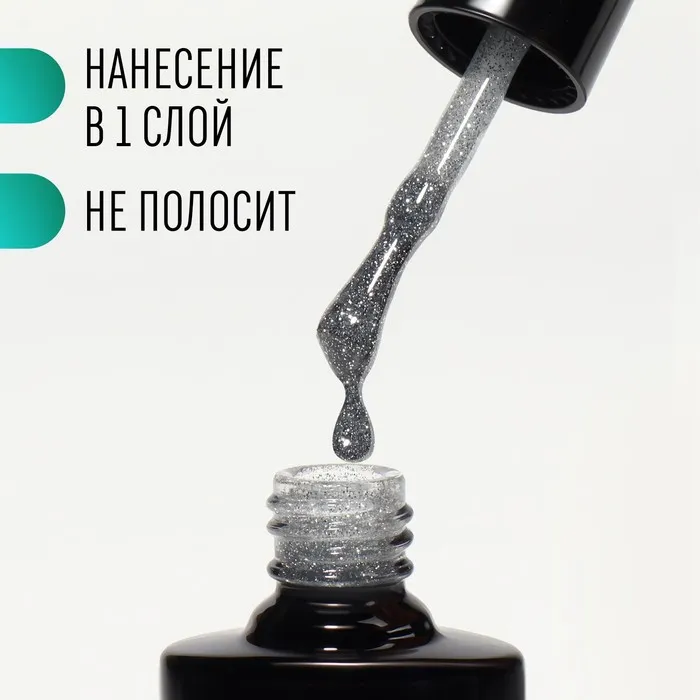 Гель лак для ногтей, светоотражающий, трехфазный, 8 мл, LED/UV, серебристый (001) — Характеристики