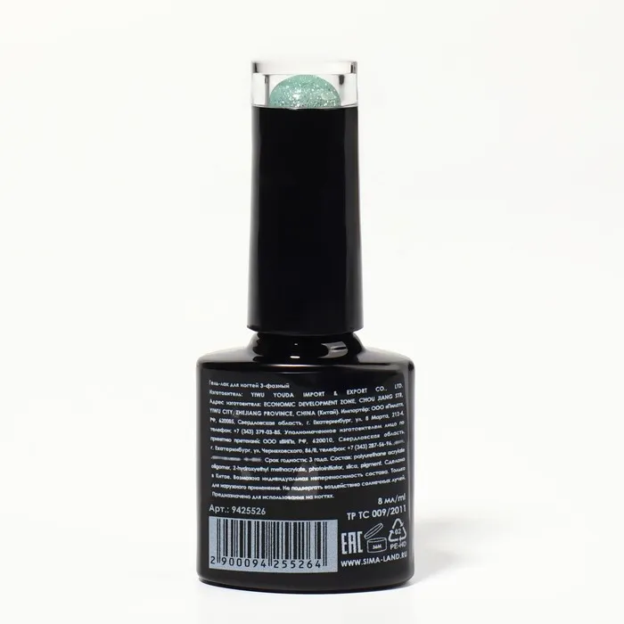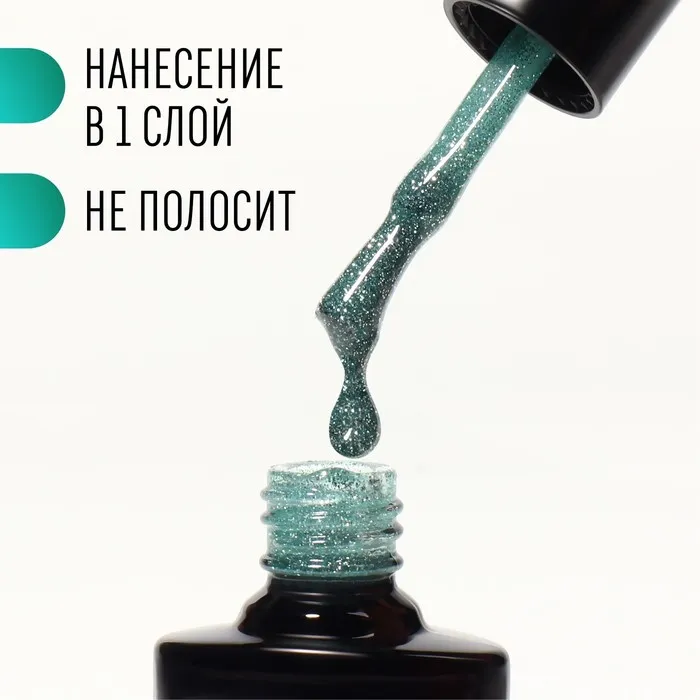 Гель лак для ногтей, светоотражающий, трехфазный, 8 мл, LED/UV, зелёный (009) — Характеристики