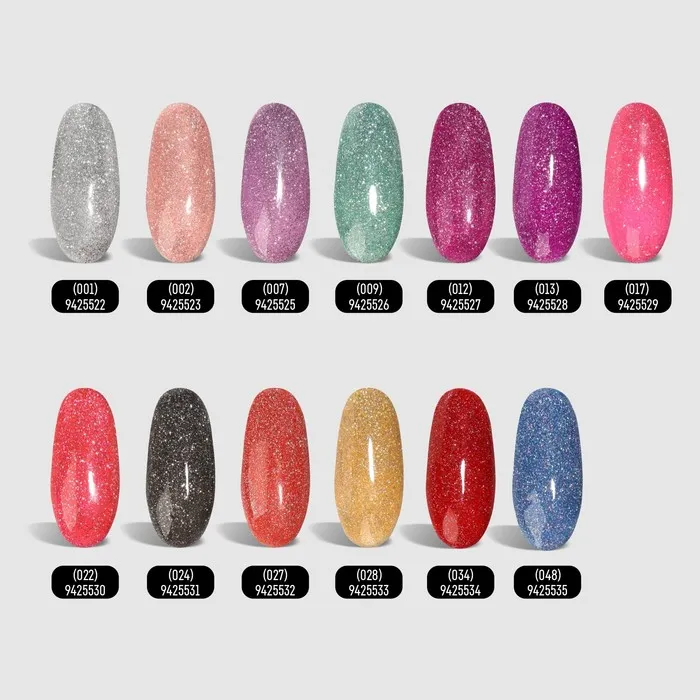 Глубокое сияние гель лака раскрывается при попадании на покрытие освещения. Уникальная формула лака с блёстками отражает всю силу лучей света, благодаря чему достигается эффект, будто ногти посыпаны магической пылью. Индикатор цвета на верху бутылька, поможет Вам подобрать идеальный цвет.