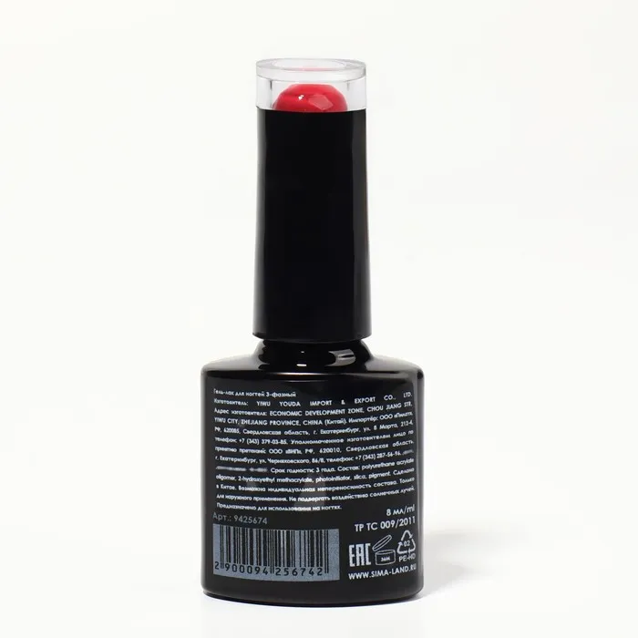 Гель лак для ногтей, трехфазный, 8 мл, LED/UV, красный (86) — Характеристики