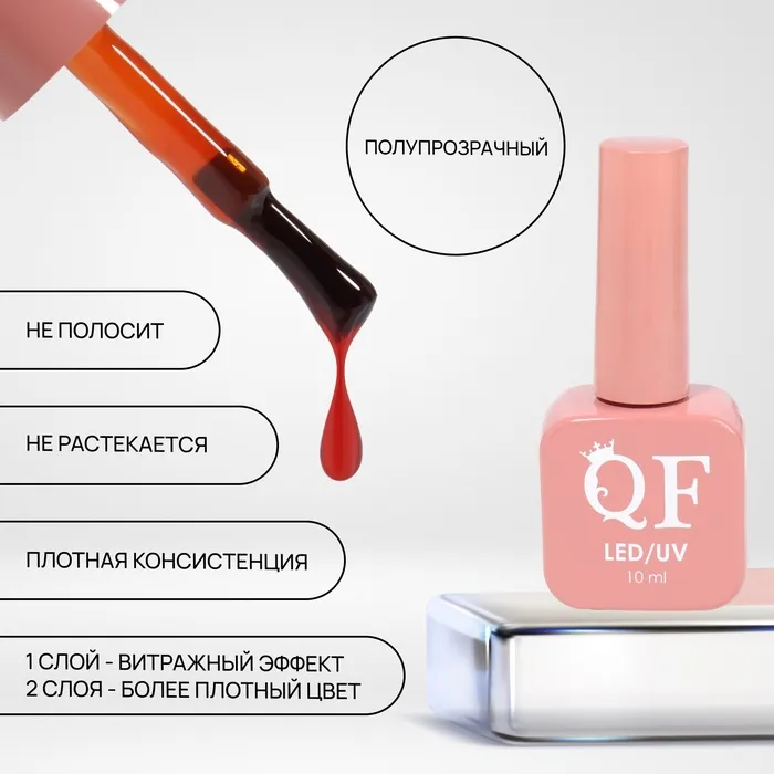 Гель лак для ногтей, витражный, трехфазный, 10 мл, LED/UV, орнажевый (76) — Характеристики
