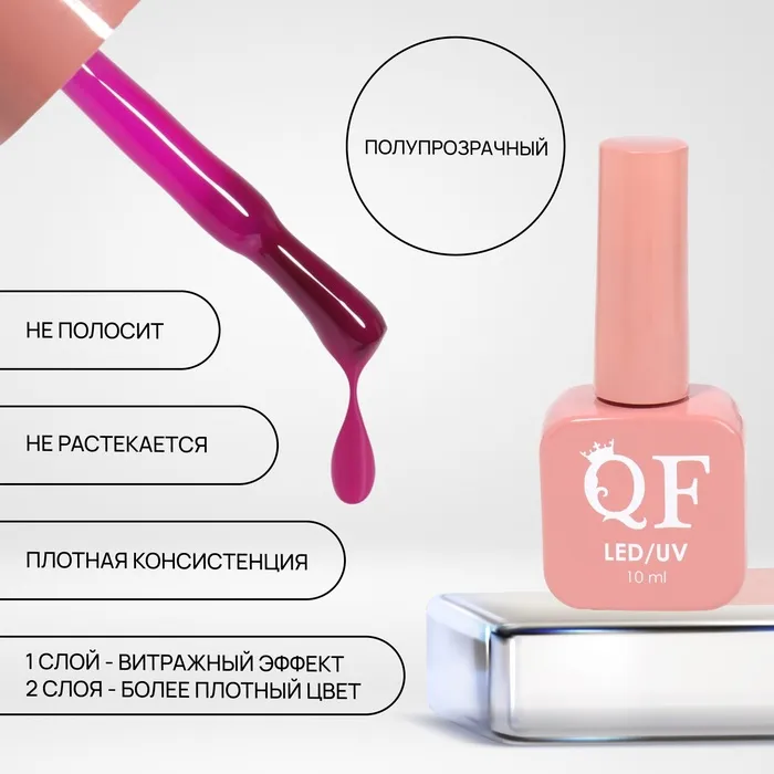 Гель лак для ногтей, витражный, трехфазный, 10 мл, LED/UV, розовый (71) — Характеристики