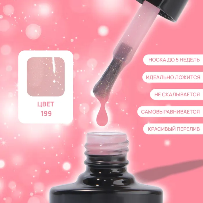 Гель лак для ногтей, витражный, трехфазный, 8 мл, LED/UV, розовый (199) — Характеристики