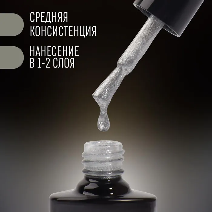 Деликатное сияние гель лака раскрывается при попадании на покрытие света. Перламутровый лак равномерно распределяется и идеально сцепляется с ногтевой пластиной. Используйте для праздничного и повседневного маникюра. Индикатор цвета на верху бутылька, поможет Вам подобрать идеальный цвет.