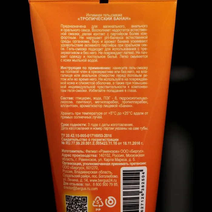 Гель-лубрикант Torex "Тропический банан", интимный, 50 мл — Характеристики