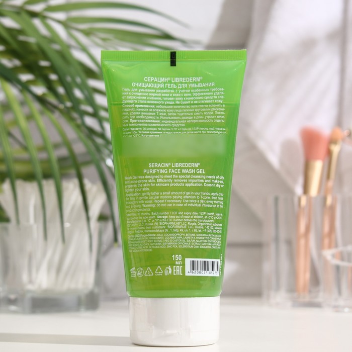 Очищающий гель для умывания Librederm Серацин разработан для жирной, проблемной кожи лица и эффективно работает против акне. Мягко удаляет загрязнения и макияж, подготавливает кожу к нанесению уходовых средств. Не сушит и не стягивает.