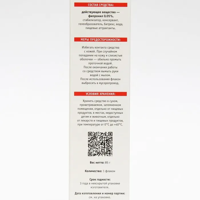 Гель от тараканов и домовых муравьев "Наповал", флакон, 85г — Характеристики