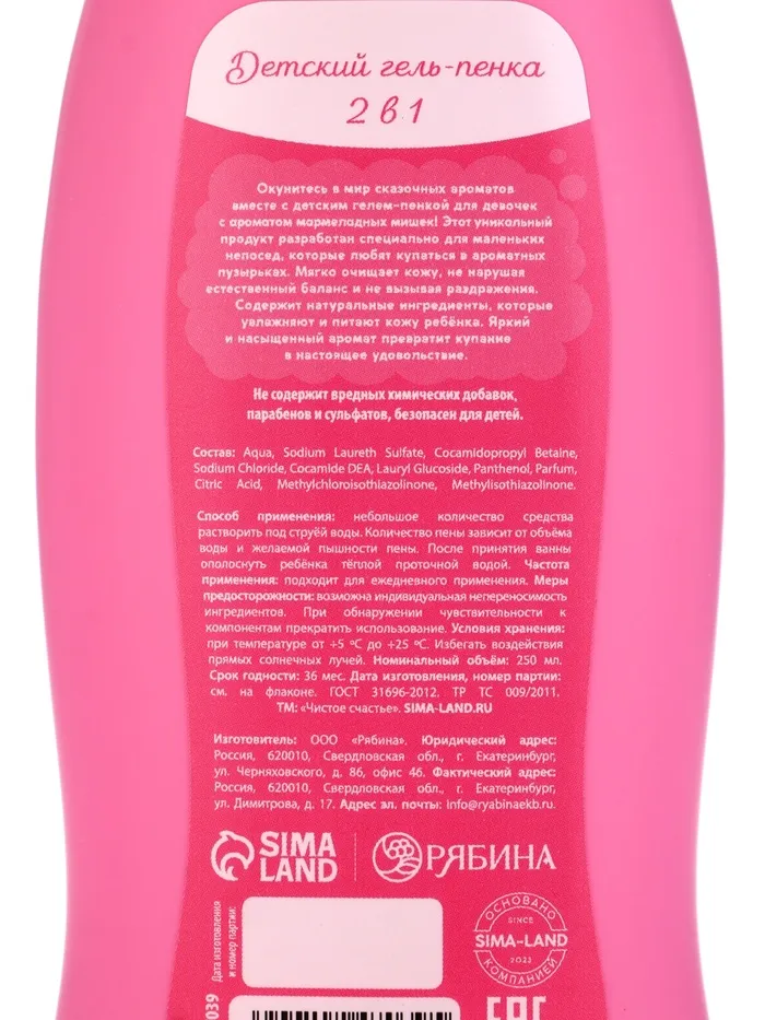 Гель-пена для девочек «Самая красивая», аромат мармеладные мишки, 250 мл, Чистое счастье — Характеристики