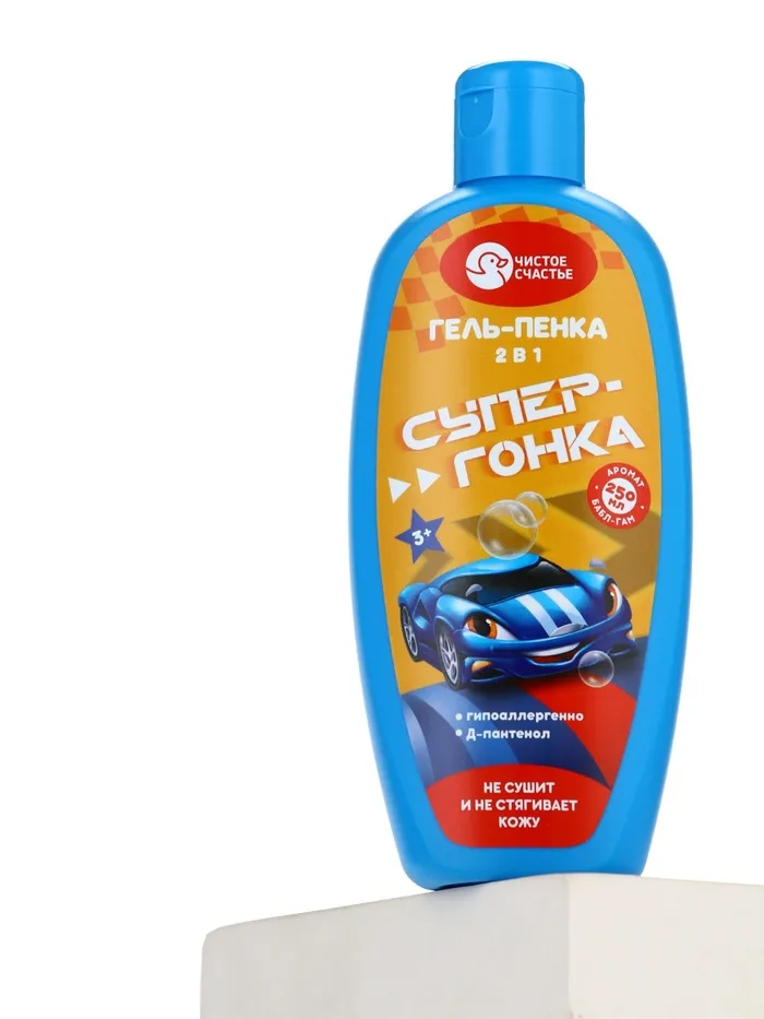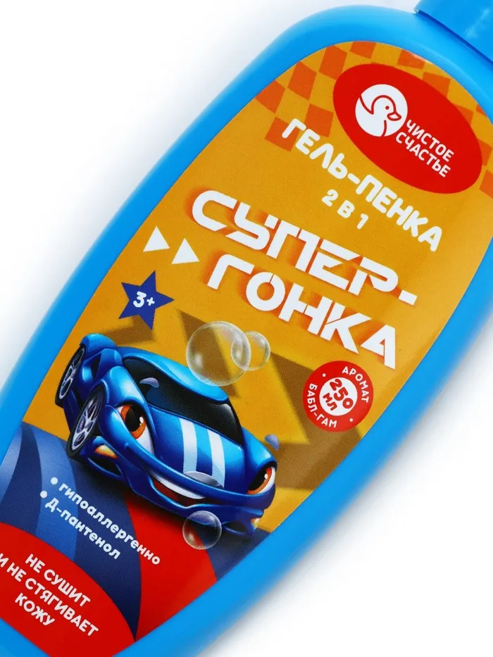 Гель-пена для мальчиков Супер-гонка, аромат бабл-гам, 250 мл, Чистое счастье — Характеристики