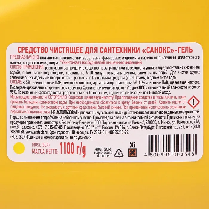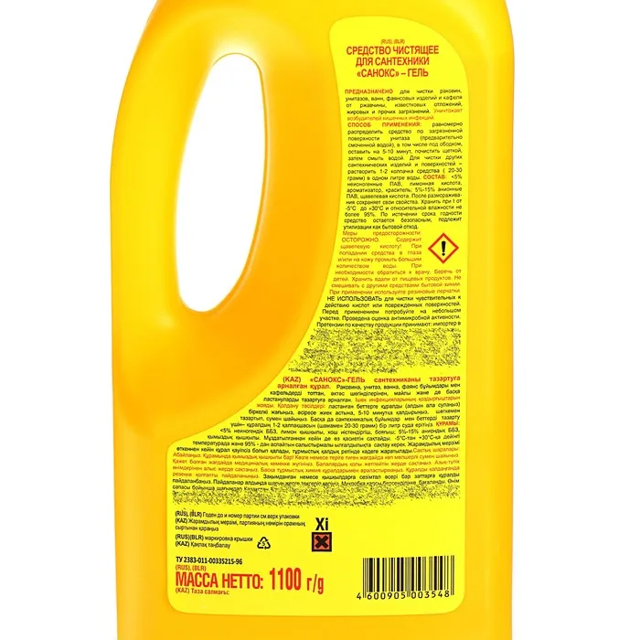 Гель Санокс, чистящее средство для сантехники, 1.1 л — Характеристики