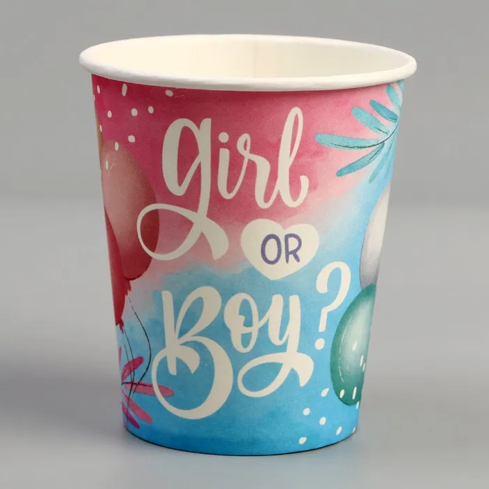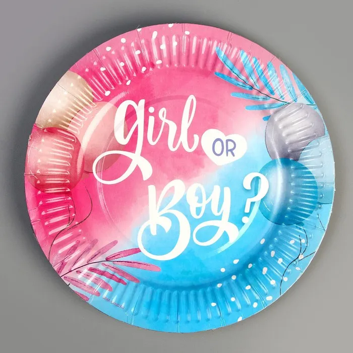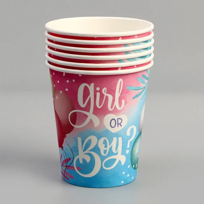 Гендер-пати. Набор посуды «Мальчик или девочка», стаканы 6 шт., тарелки 6 шт. — Характеристики