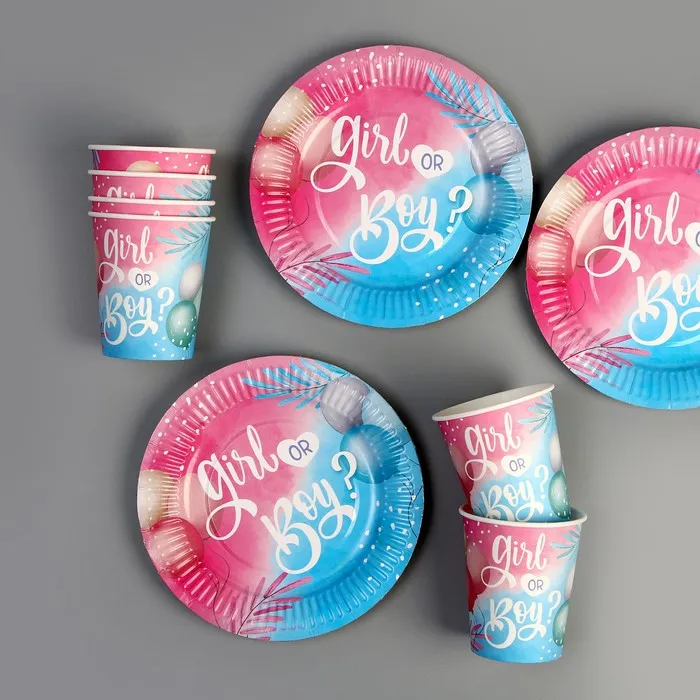 Гендер-пати. Набор посуды «Мальчик или девочка», стаканы 6 шт., тарелки 6 шт.