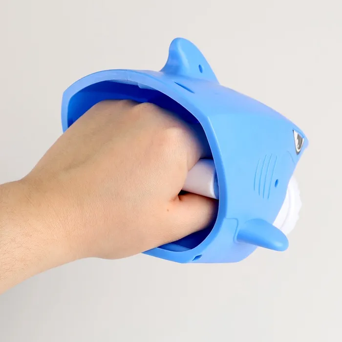 Генератор мыльных пузырей в форме акулы станет прекрасным дополнением к детским играм. Он создаёт множество пузырей, наполняя пространство радостью и весельем. Компактный размер устройства позволяет использовать его как дома, так и на улице, делая любую прогулку или праздник ярче.