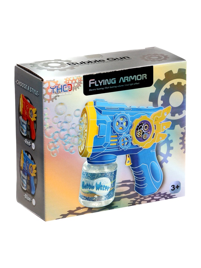 - Эргономичная форма бластера: удобно лежит в детской руке — можно легко направлять поток пузырей в нужную сторону.