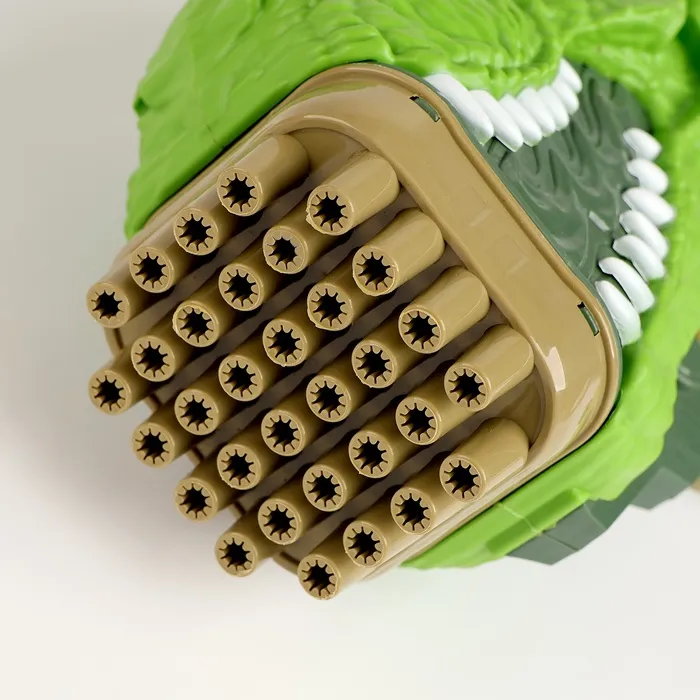 Генератор мыльных пузырей в виде динозавра станет прекрасным дополнением к детским играм. Он создаёт множество пузырей, наполняя пространство радостью и весельем. Компактный размер устройства позволяет использовать его как дома, так и на улице, делая любую прогулку или праздник ярче.