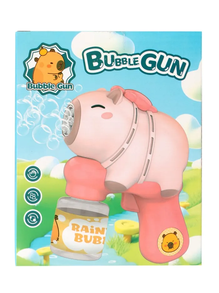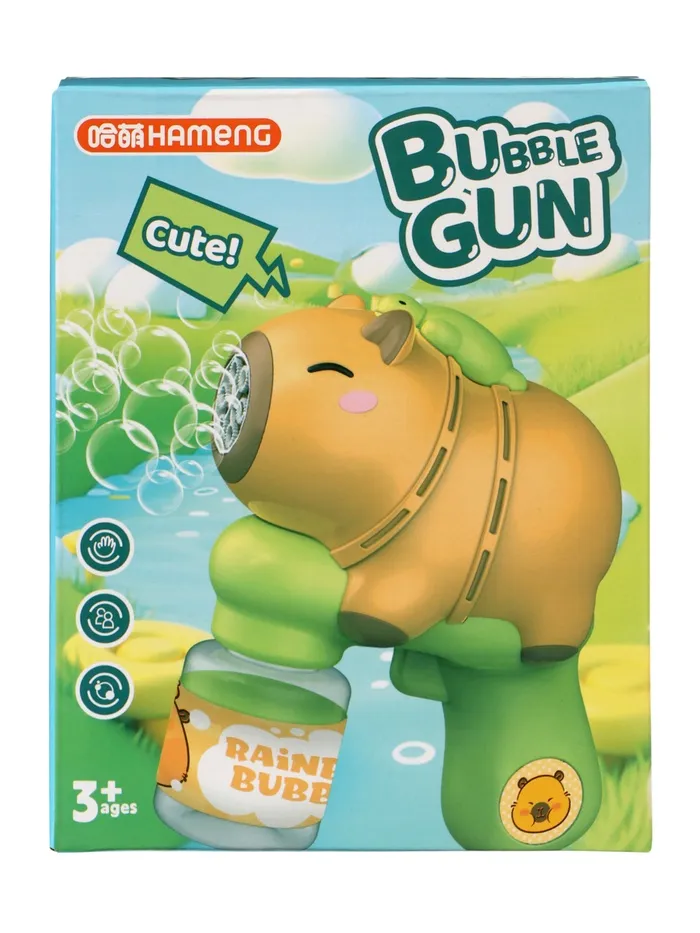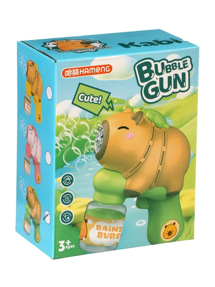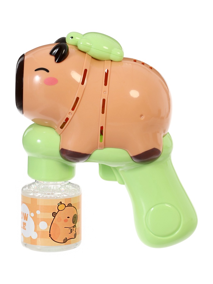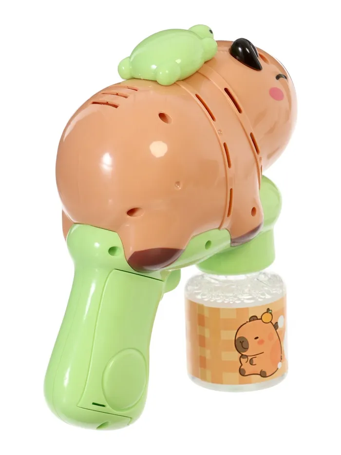 Запусти весёлый поток мыльных пузырей с самым дружелюбным животным! Автоматическая капибара с генератором пузырей — это милый и забавный спутник для детских игр. С этим симпатичным устройством в виде капибары ребёнок сможет легко создавать сотни мыльных пузырей одним нажатием кнопки.