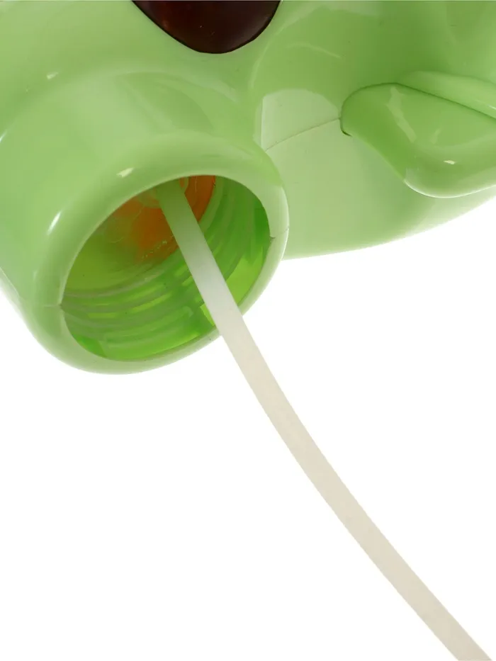 - Простое управление одной кнопкой: работает от батареек — ребёнок самостоятельно включает устройство. Не нужно дуть — механизм сам создает непрерывный поток пузырей.