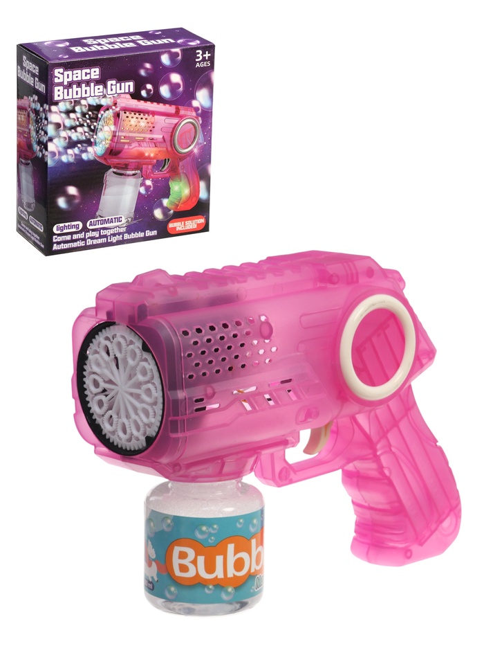 Генератор мыльных пузырей «Космический Бластер», световые эффекты, цвет розовый — Характеристики