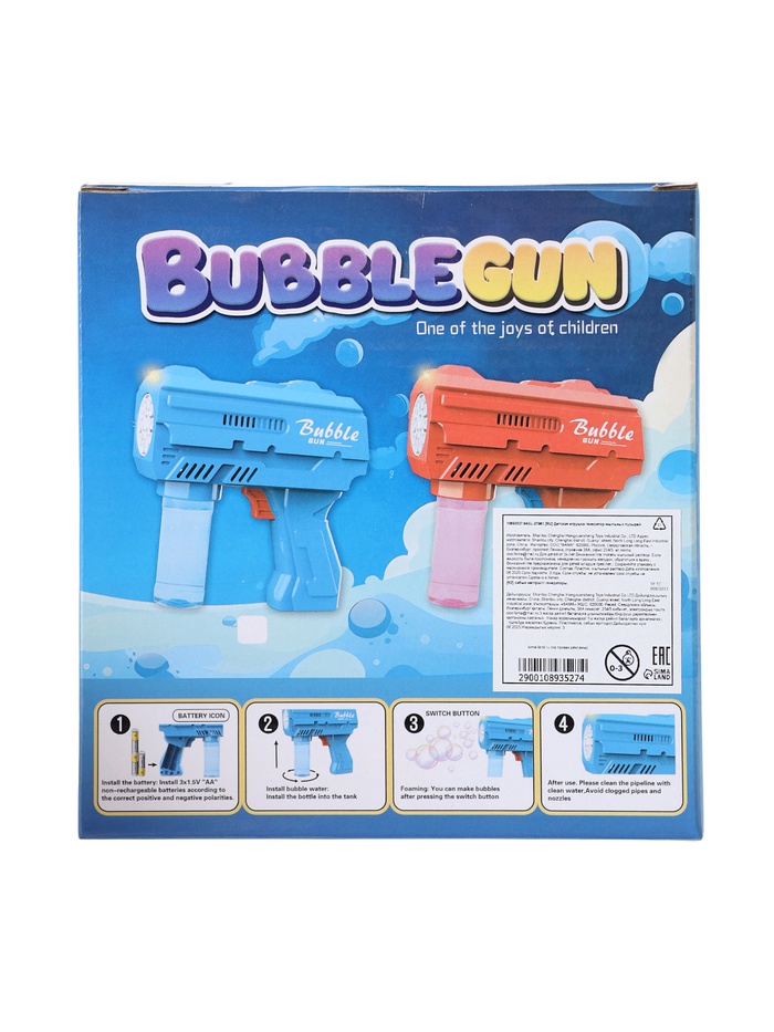 - Полная комплектация: в набор входит готовый мыльный раствор — можно начинать игру сразу после распаковки. Пистолет работает от батареек, что обеспечивает мобильность использования.