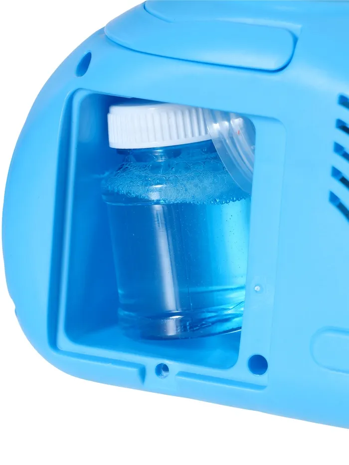 - Непрерывное пузырьковое шоу: машина автоматически производит сотни пузырей без постоянного нажатия. Достаточно включить устройство — и поток переливающихся шариков наполнит пространство.