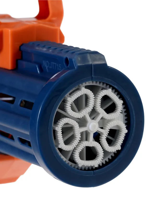 - Непрерывная пузырьковая стрельба: механизм автоматически выпускает плотный поток пузырей без перезарядки. Ребёнок может вести непрерывный «огонь», создавая эффектную пузырьковую завесу.