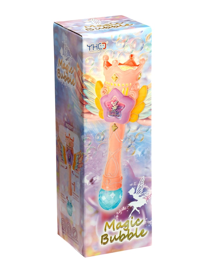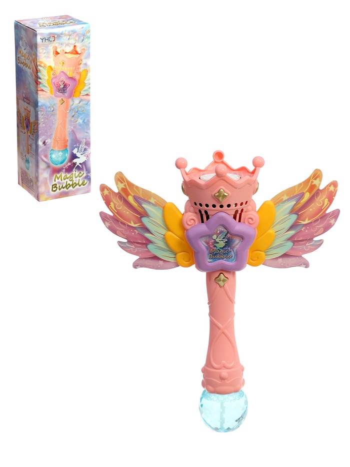 Создай магию мыльных пузырей одним взмахом! Волшебная палочка-генератор пузырей с подсветкой — это очаровательная игрушка для маленьких фей. Нежный дизайн с крыльями и мерцающие огоньки превращают игру в настоящую сказку.