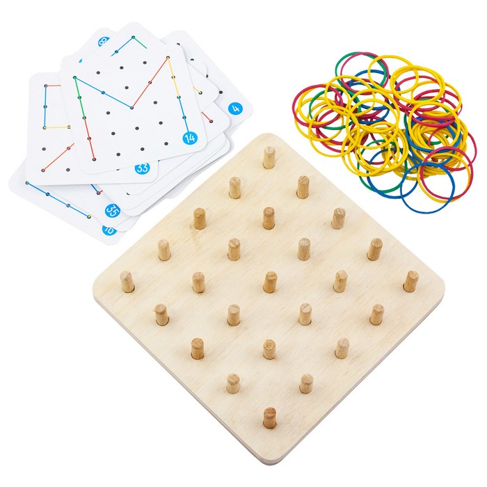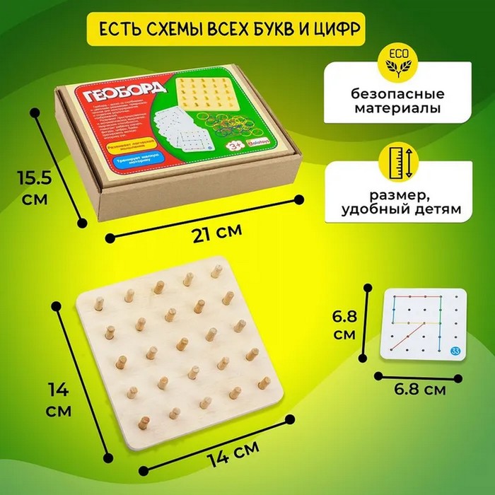 Геоборд основание, инструкция, 20 двусторонних карточек, 50 резинок, 14×14×2.5 см — Характеристики