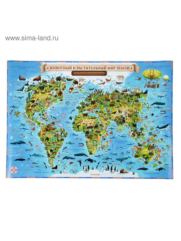 Географическая карта Мира для детей "Животный и растительный мир Земли", 60 х 40 см, без ламинации — Характеристики