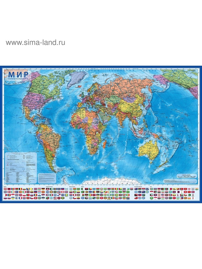 Географическая карта мира политическая, 101 х 66 см, 1:32 М