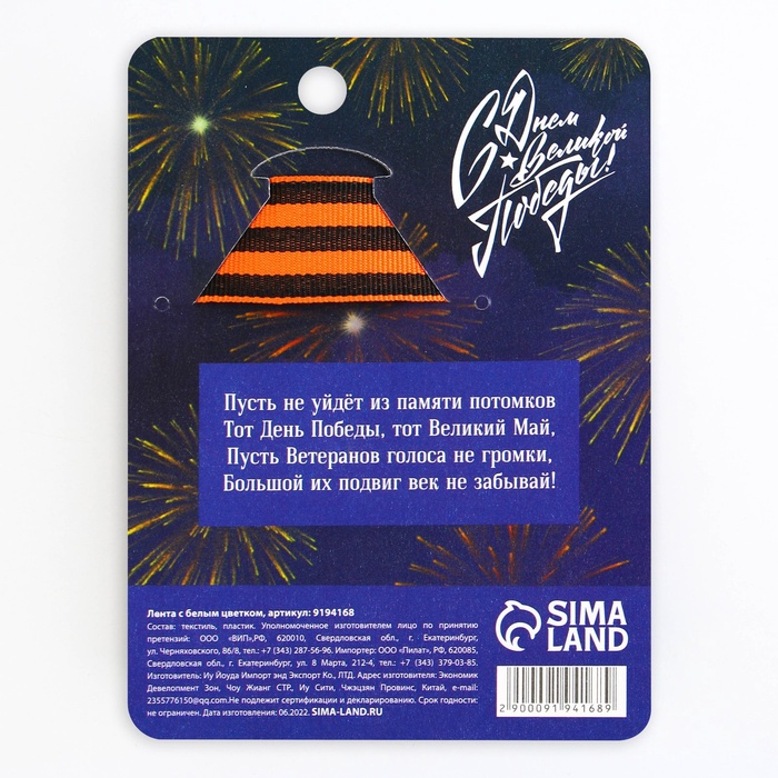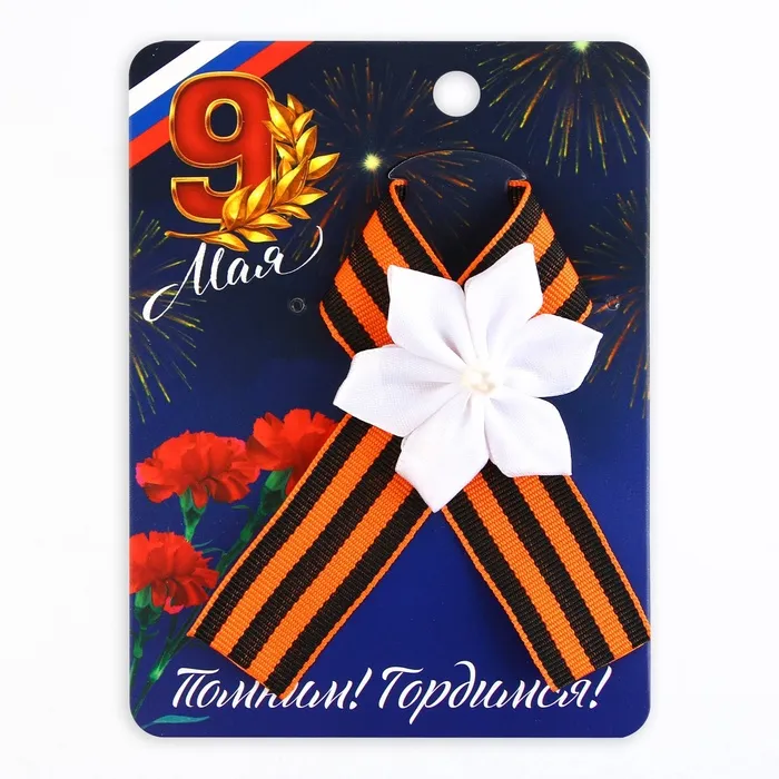 Лента с белым цветком на 9 мая выполнена из очень качественного, плотного материала. Все детали на Георгиевской ленте выполнены аккуратно, смотрятся потрясающе. В период Великой Отечественной войны полоски на ленте воспринимали как цвета пороха и огня. Но во все времена этот символ ассоциировался с мужеством, героизмом и победой. Каждый год 9 мая мы крепим Георгиевские ленточки, чтобы проявить уважение к воинам и показать, что память об их подвиге жива. Носите Георгиевскую ленту всей семьей на праздничные шествия и мероприятия в честь 9 Мая.