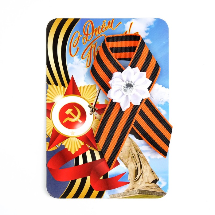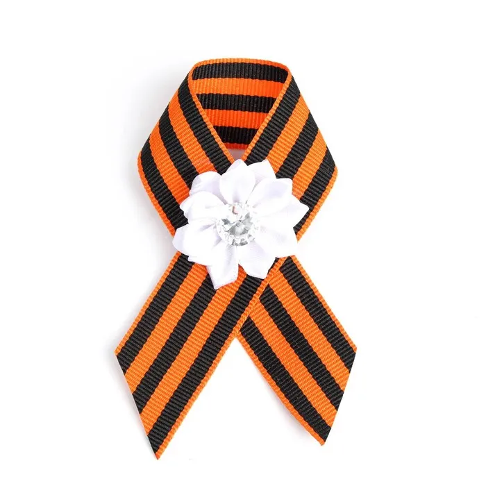 Георгиевская лента на 9 мая «С Днём Победы», с булавкой и белым цветком — Характеристики
