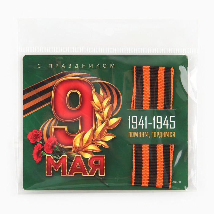 Георгиевская лента на подложке 9 мая: День победы «9 мая» 2.5×25 см — Характеристики
