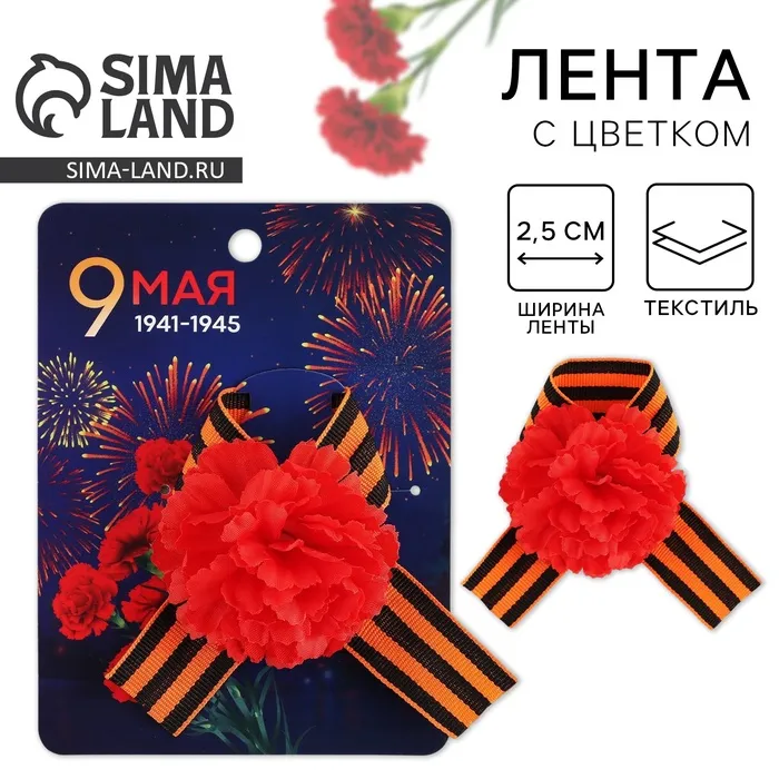 Георгиевская лента , с цветком на День победы «9 мая», 10,5 х 14 см — Характеристики
