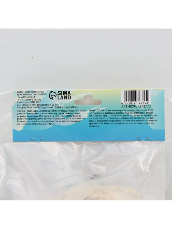 Георгина Декоративная «Сиса», клубнелуковица в упаковке, р-р I, 1 шт. — Характеристики