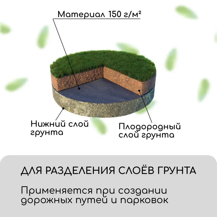 Для разделения грунта. Применяется при создании дорожных путей и парковок.Для укрытия деревьев зимой. Хорошо сохраняет тепло и защищает растение от заморозков.Ограничение роста корней. Ограничивает рост и не даёт корням прорости.Устройство садовых дорожек. Укрепляет почву, обеспечивает дренаж и гидроизоляцию основания.Создание прудов и водоёмов. Продлевает долговечность водоёма, укрепляет дно и береговую линию.Защита дренажных систем. Перенаправляет поток грунтовых вод.