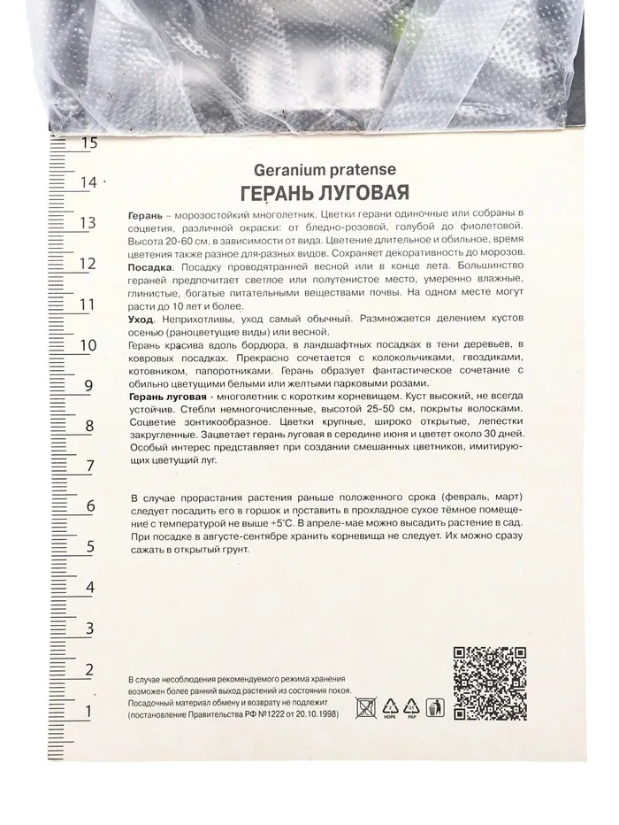 Герань луговая Лаура, корневище в пакете с торфогрунтом, р-р I, 1 шт. — Характеристики