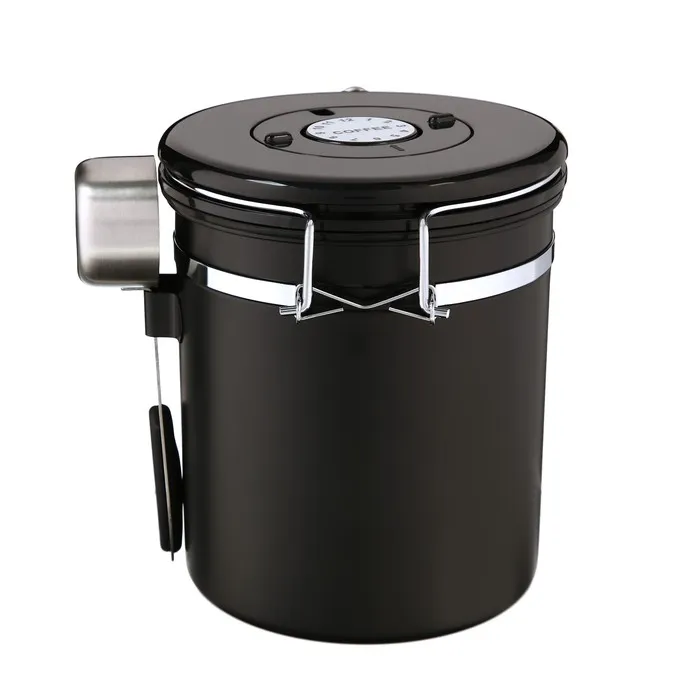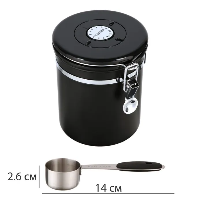 Герметичный контейнер для хранения молотого кофе и кофейных зерен, 1.5 л, 15 х12 см, черный — Характеристики