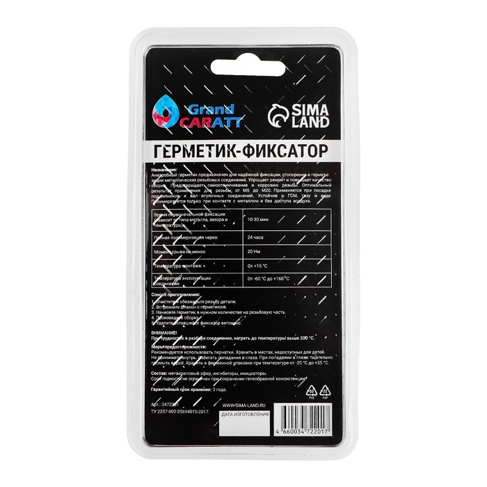 Герметик фиксатор Grand Caratt, неразъёмный, быстрой фиксации, 6 г — Характеристики