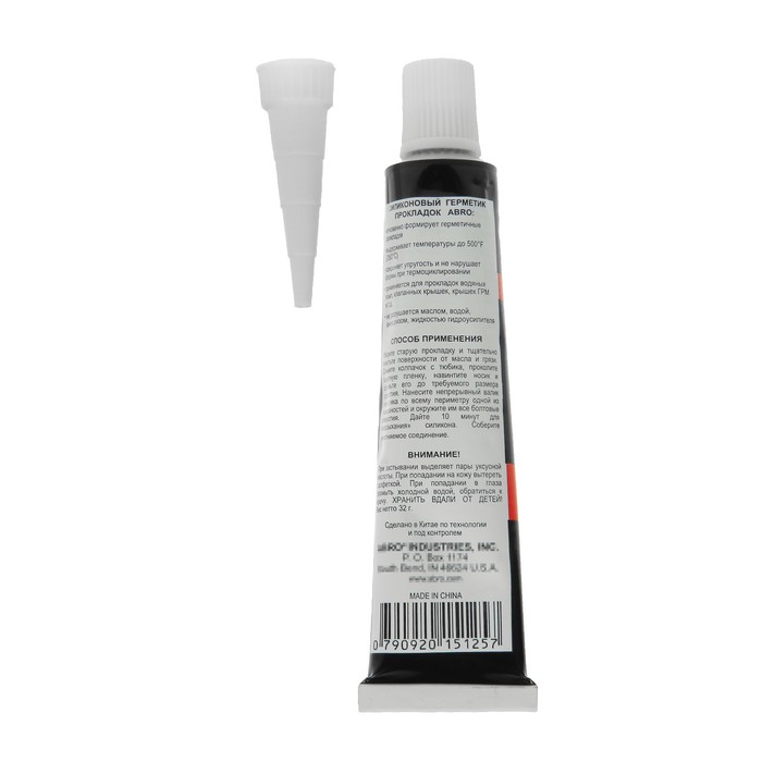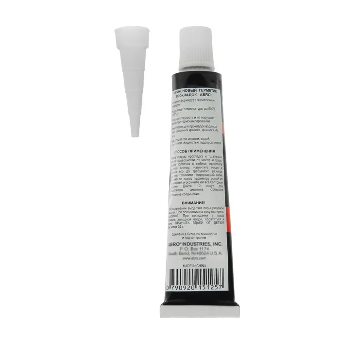Герметик прокладок ABRO черный Китай 32 гр 12-AB-CH-32R обеспечивает надежную герметизацию соединений, ремонтирует и заменяет штатные прокладки из резины и силикона. Продукт используют во время монтажа деталей, работающих при повышенной температуре. Состав образует прочный клеевой шов, который не разрушается под действием масла, воды и антифриза.