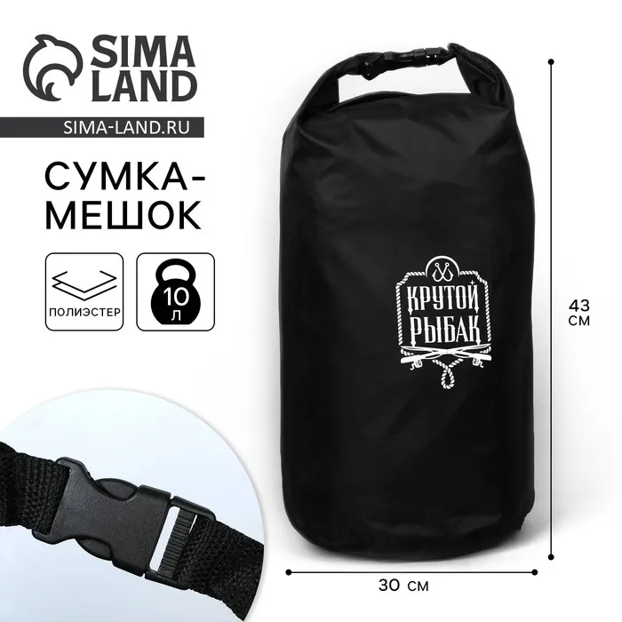 Гермомешок «Крутой рыбак», 10 л., черный