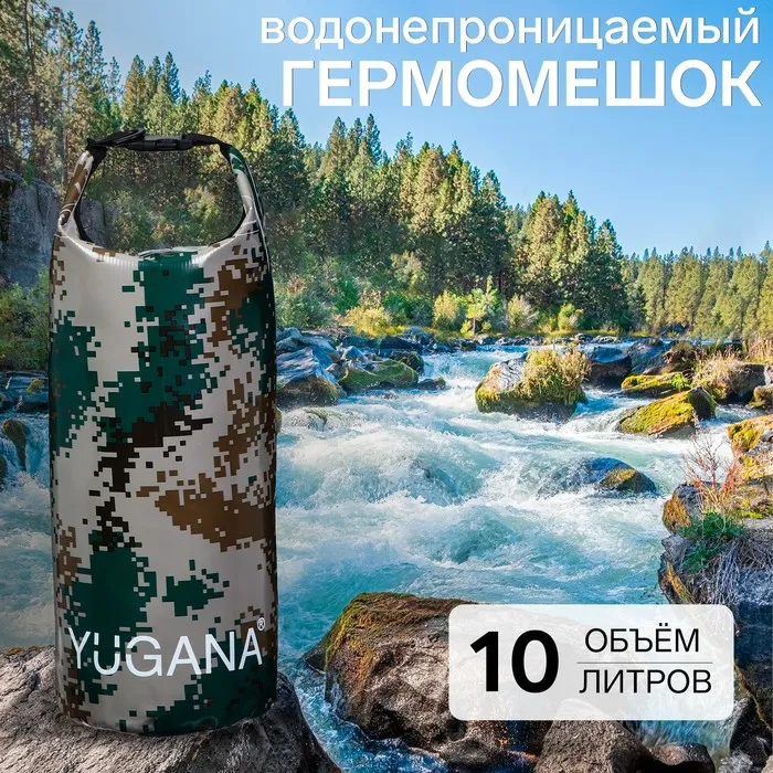 Гермомешок YUGANA, ПВХ, водонепроницаемый 10 литров, один ремень, камуфляж — Характеристики