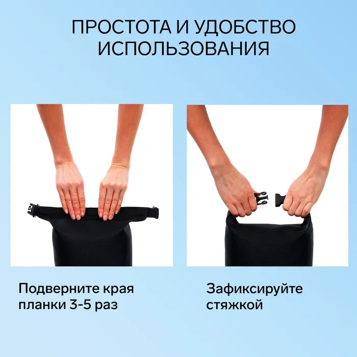 - Удобство использования. Гермомешки оснащены регулируемым плечевым ремнём, что позволяет носить их как на одно плечо, так и перекинув через голову.