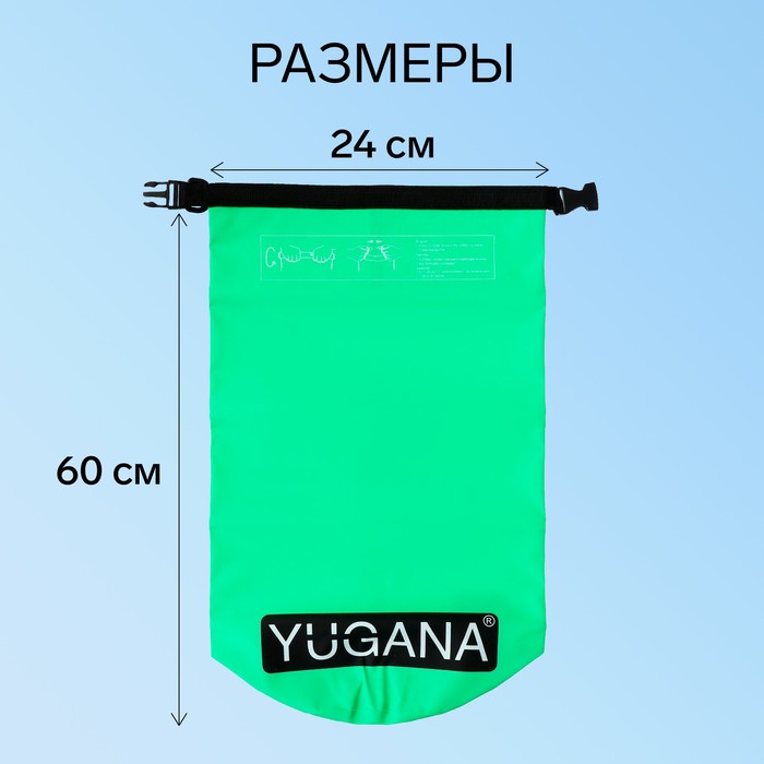 Гермомешок YUGANA, ПВХ, водонепроницаемый 20 литров, один ремень, зеленый — Характеристики