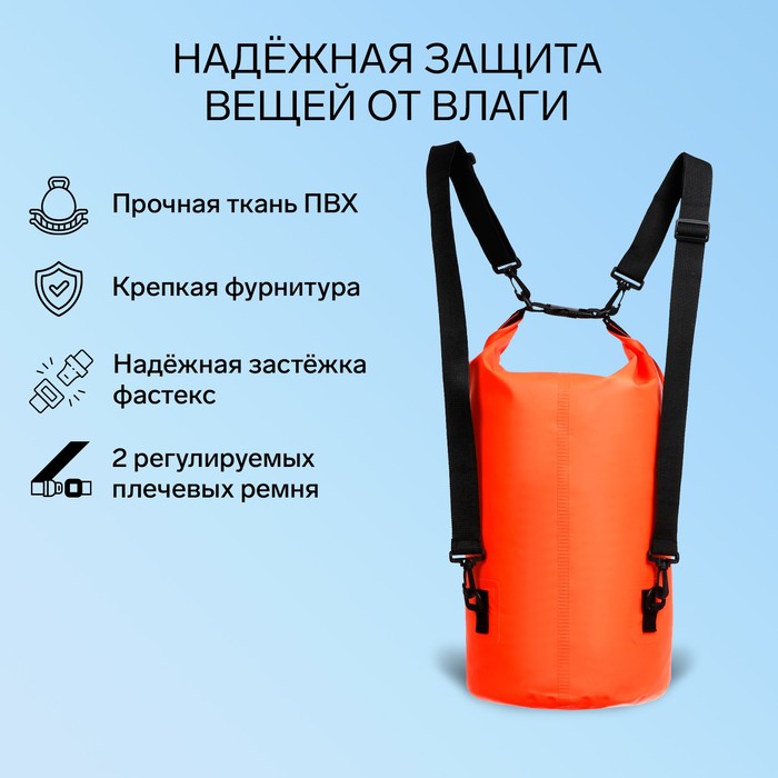 Гермомешок YUGANA, ПВХ, водонепроницаемый 30 литров, два ремня, оранжевый — Характеристики