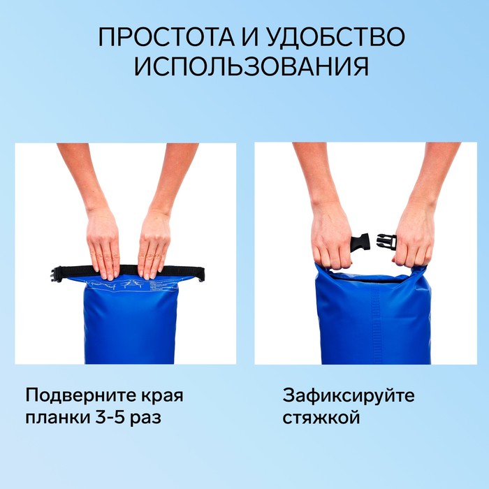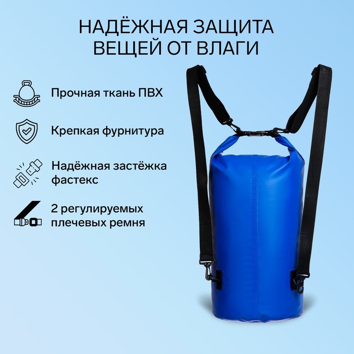 Гермомешок YUGANA, ПВХ, водонепроницаемый 30 литров, два ремня, синий — Характеристики