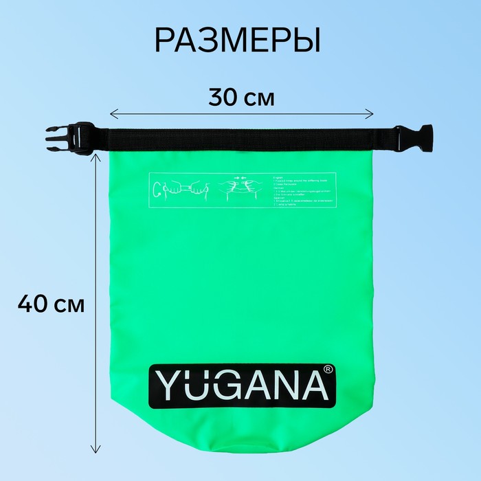 Гермомешок YUGANA, ПВХ, водонепроницаемый 5 литров, один ремень, зеленый — Характеристики